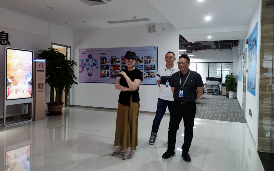 10月30日,《中国元宇宙》纪录片石岚导演走进博乐数字展厅,与公司董事长、副总经理共同沟通了数字科技在元宇宙产业的发展应用,探讨AR、MR等技术与数字产业的发展动向,期待为数字经济的高质量发展蓄势赋能。