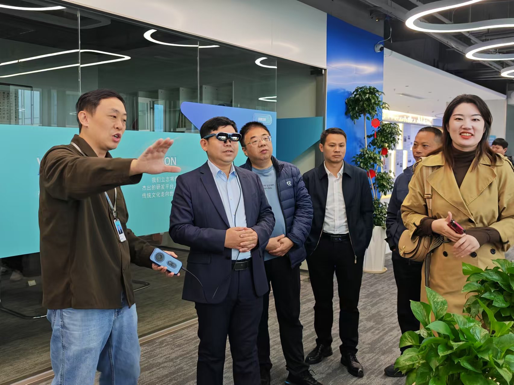兴国县领导一行在博乐信息元宇宙展厅体验了最新研发的人工智能产品和XR混合现实产品。