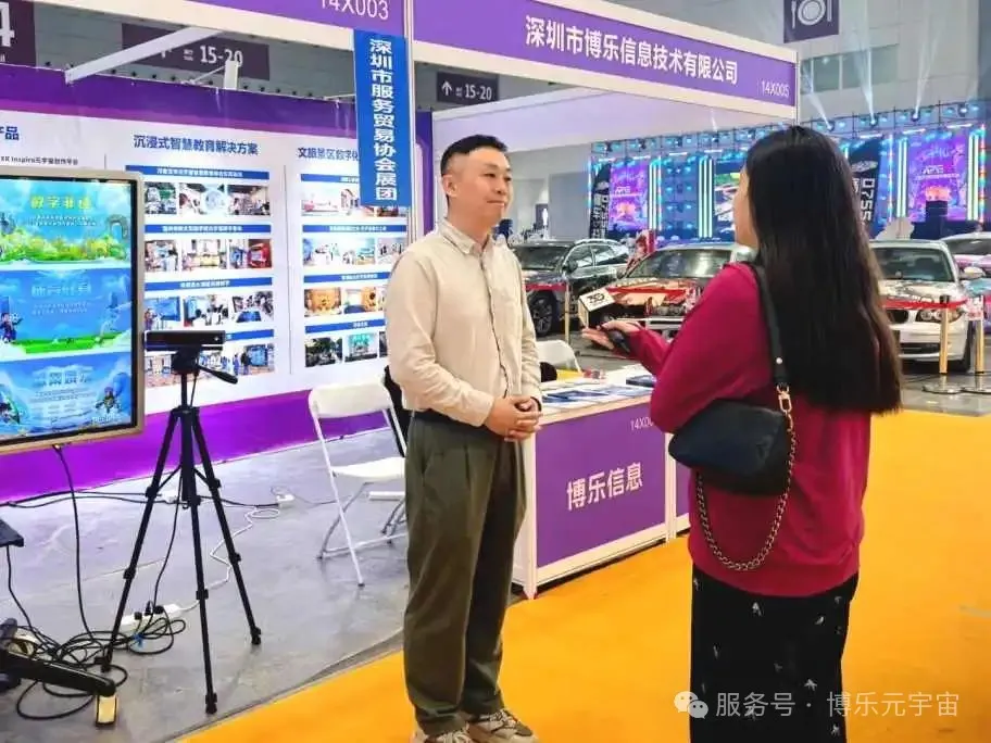 双展区日均接待游客超万人次,其中AIGC创作平台、MR非遗漫游、AR大屏互动等体验区人气爆棚,排队等候的观众络绎不绝。湖南经视新闻记者被博乐展区的AR大屏互动内容深深吸引,对其创新性和趣味性赞不绝口。在亲身体验后,记者对博乐信息副总经理李恩祥进行了现场采访,深入了解博乐信息在AR、MR领域的前沿技术成果与创新应用。