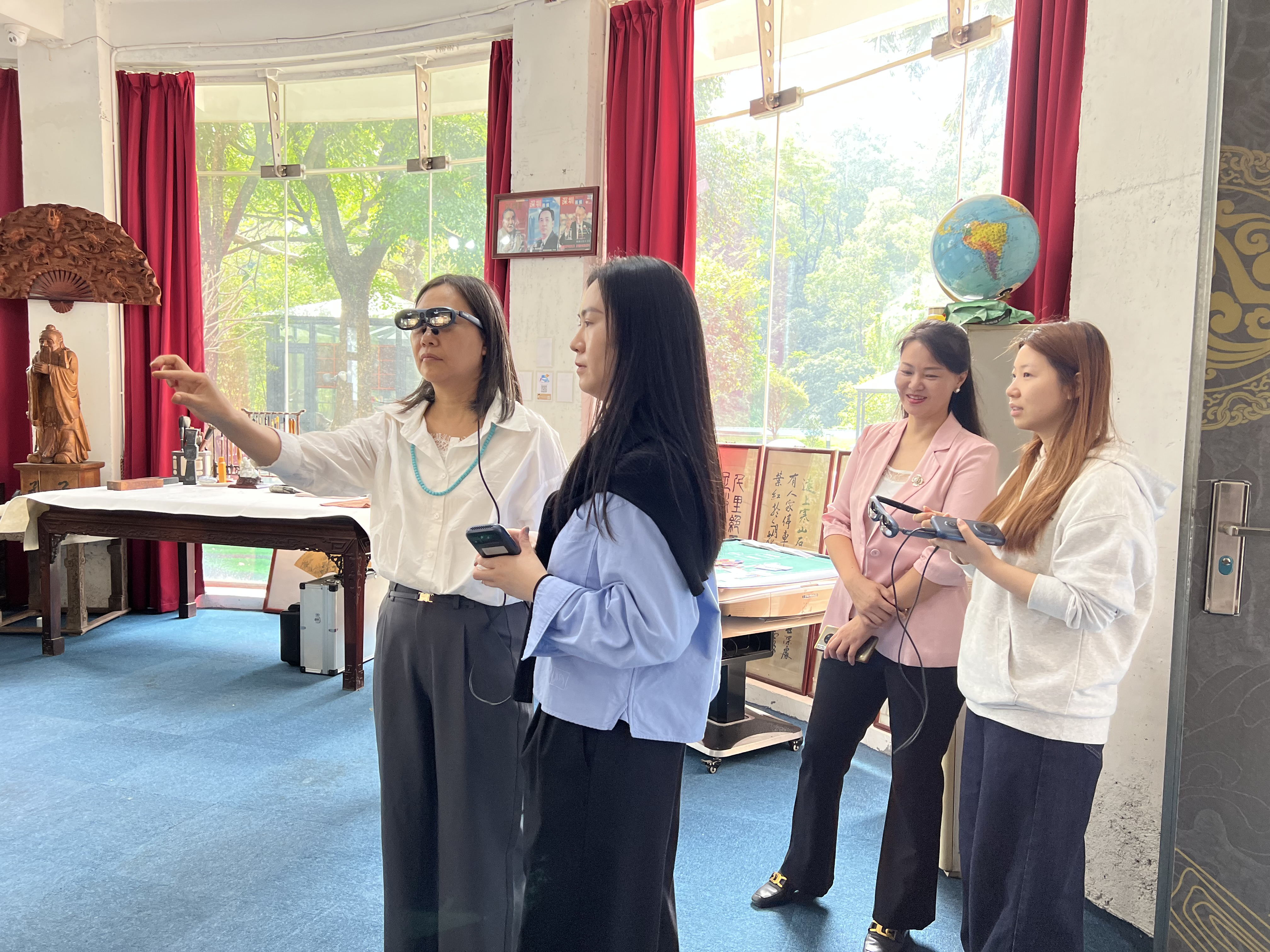 考察过程中,孙主任一行与多位校长亲身体验了博乐信息为诠释“灵境”理念所打造的三大主题MR内容:
