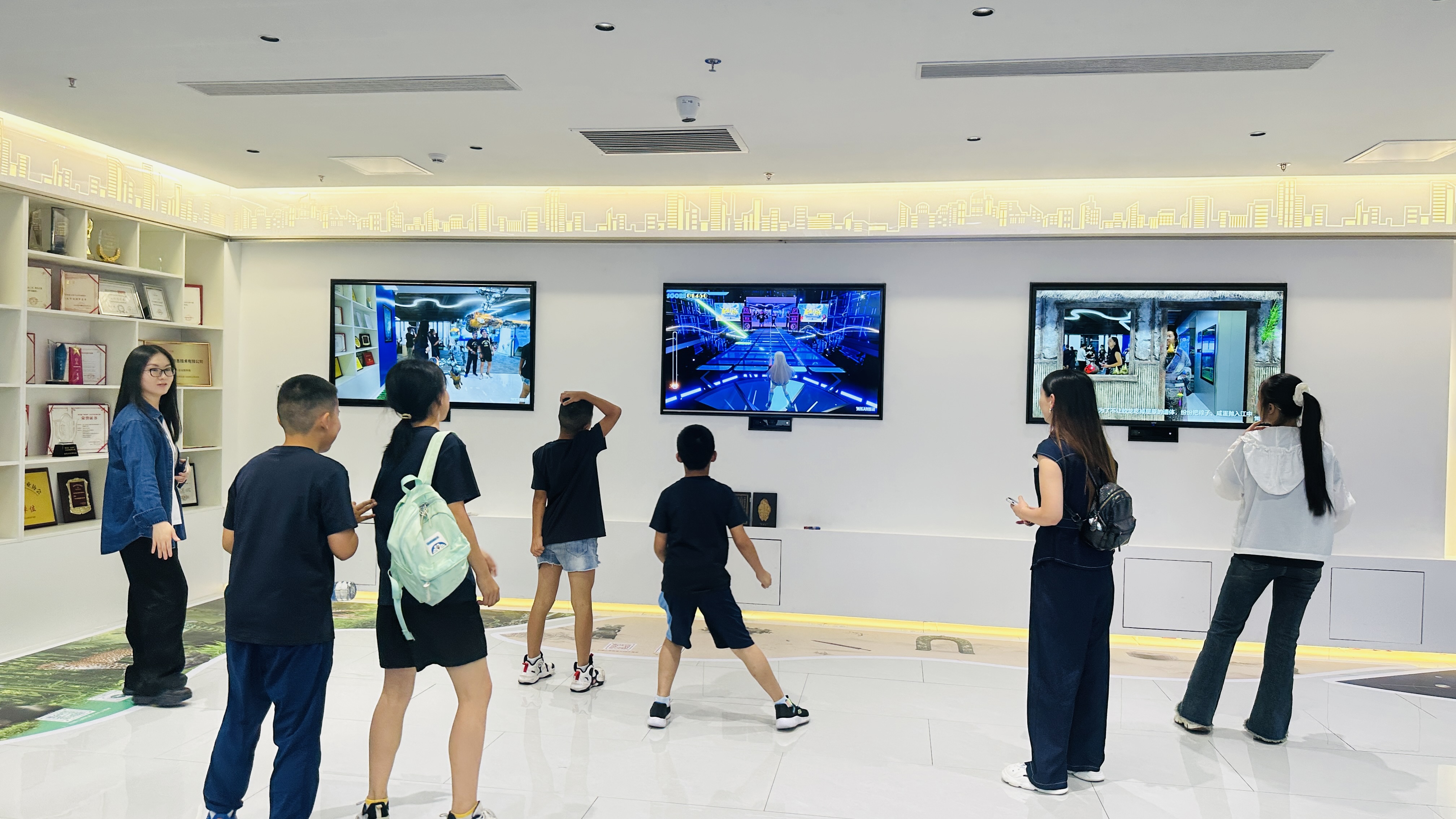 2、AR大屏互动与移动端应用:通过体感交互、人脸识别、实时渲染等技术,开发适用于校园、社区、展厅的AR互动国防课程。学生可通过手势与屏幕内容互动,学习国防知识,完成虚拟训练任务,让学习从 “看” 变为 “做”。