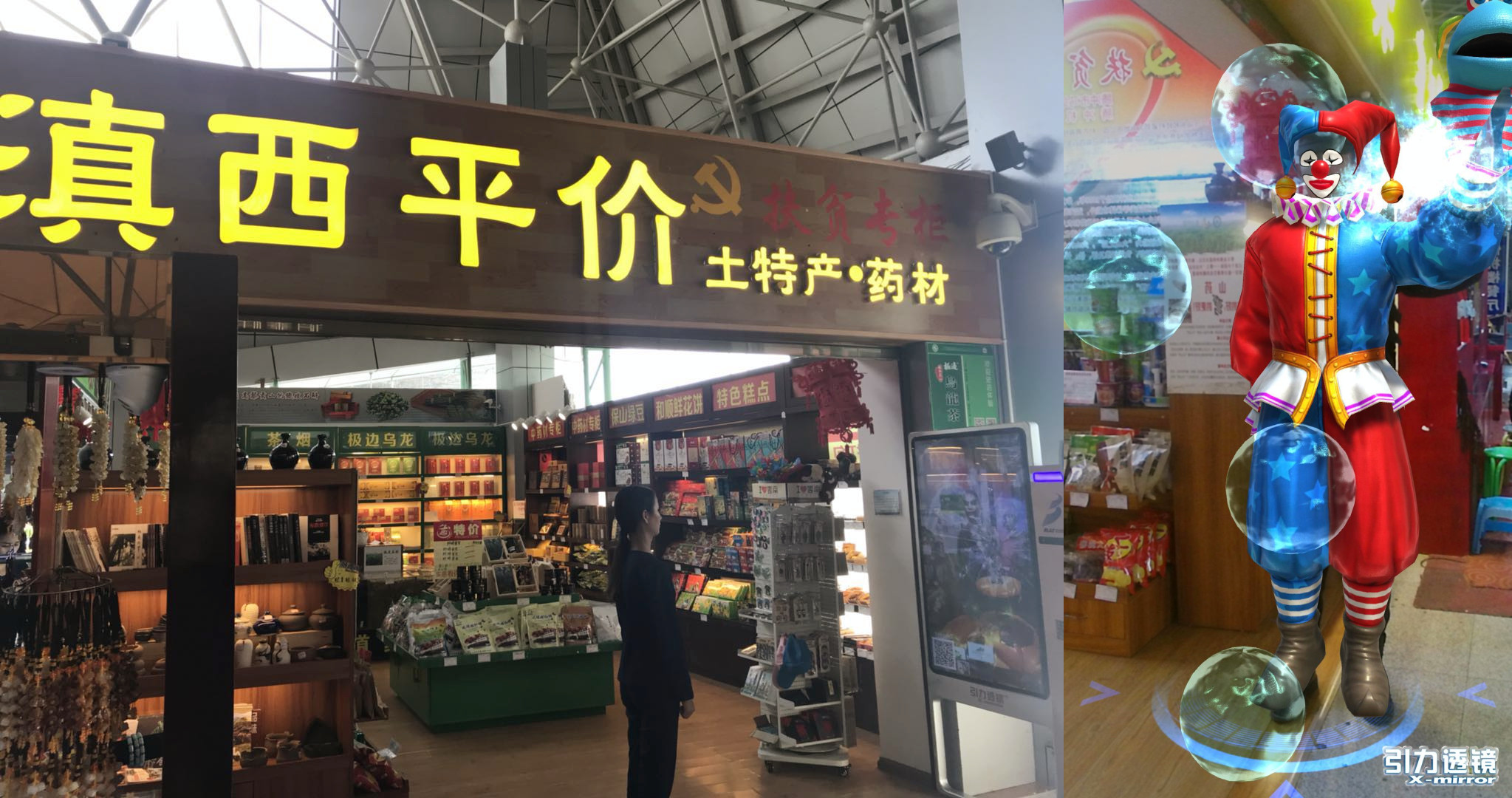 近日,记者在出入西安咸阳机场时,惊喜地发现安检外的豪士特便利店推出了一项特别契合万圣节主题的高科技体验——AR变脸。记者也有幸体验了一番,站在引力透镜大屏前,通过一系列的动作、手势与屏幕进行交互游戏,可以在瞬间任意切换几十种潮流鬼脸,有趣的是大屏会自动拍照记录体验瞬间,体验者只需扫描屏幕二维码,即可提取鬼怪惊悚的体验照片,并分享到朋友圈博出位。